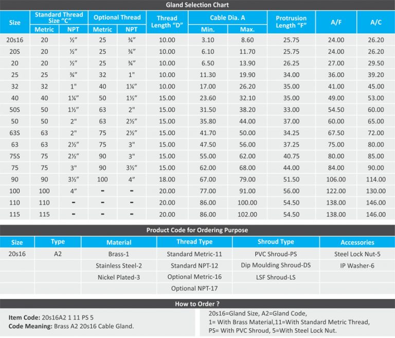 Entry Threads: Metric thread available as standard. Other thread forms e.g. BS Conduit SSE NF”T, and Pg available on request.