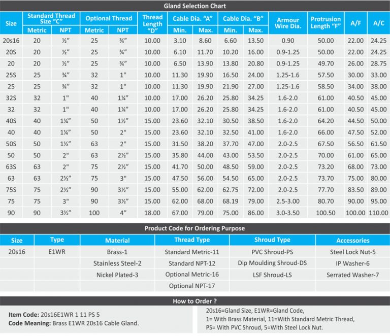 E1W Cable Gland suitable for SWA cables. Application outdoor, whenever it is required to provide sealing on cable outer sheath and inner sheath. E1W glands are weatherproof glands and can be used in corrosive conditions when protected with shroud. Positive armour locking, effective earth continuity, increased mechanical strength and safety.